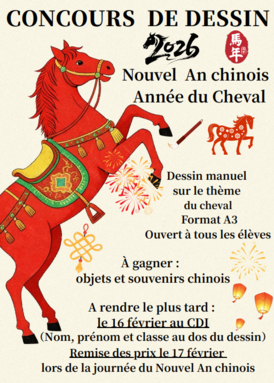 À cette occasion, notre professeure de chinois, Mme Huang, organise un grand concours de dessin ouvert à tous les élèves du collège.